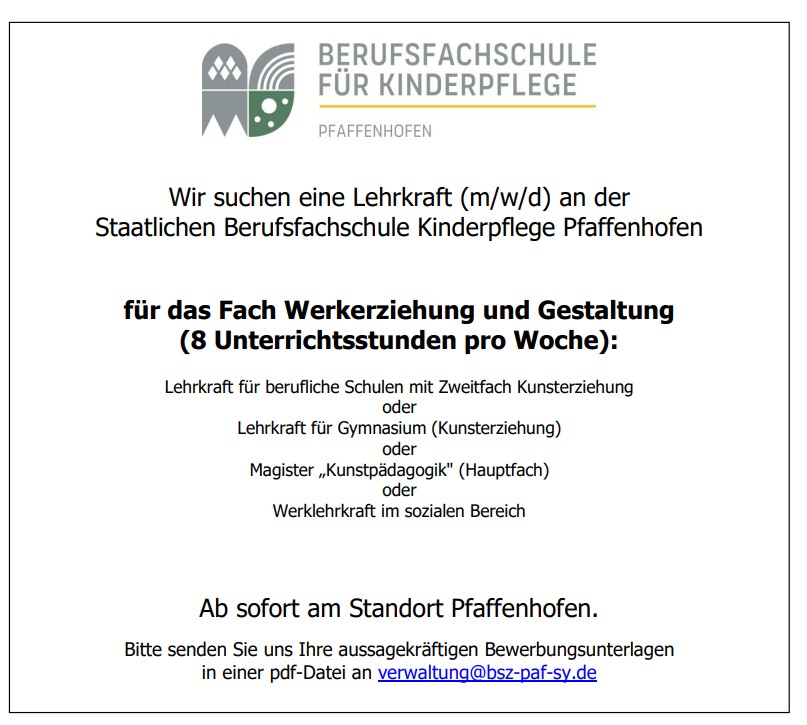 Dies gilt grundsätzlich für alle Schülerinnen und Schüler im ersten Ausbildungsjahr sowie in der Berufsfachschule für Kinderpflege für die Schülerinnen und Schüler beider Jahrgangsstufen.